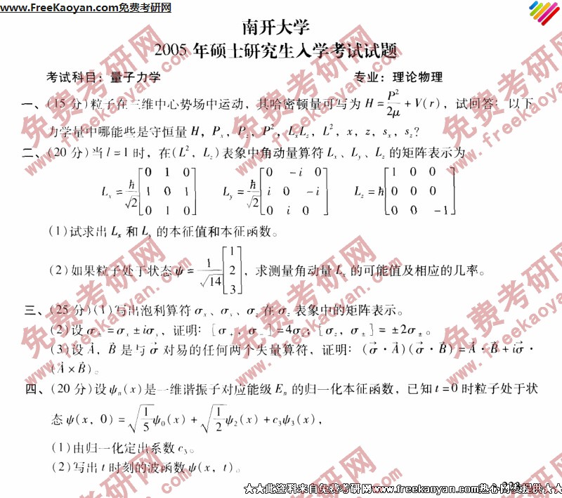 专业课半岛在线注册经验 本站小编 FreeKaoyan 2018-01-23南开大学2005年半岛在线注册真题-高等数学(光学)