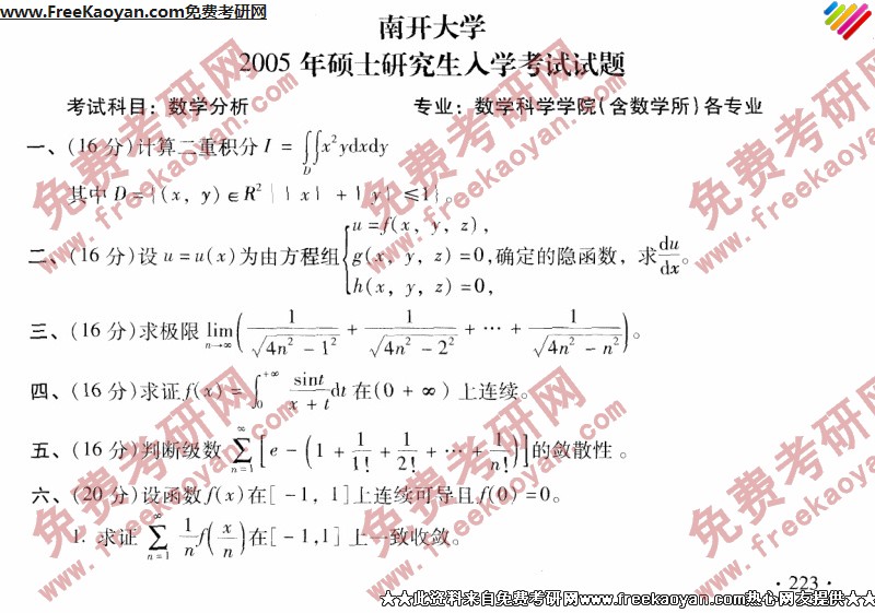 专业课半岛在线注册经验 本站小编 FreeKaoyan 2018-01-23南开大学2005年半岛在线注册真题-高等数学(光学)