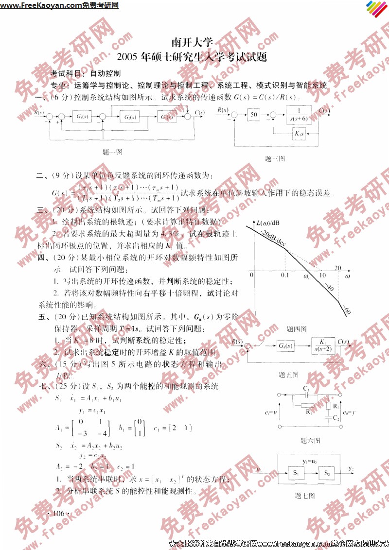 南开大学2005年半岛在线注册真题-自动控制(运筹学与控制论等专业)
