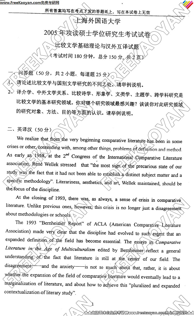 专业课半岛在线注册经验 本站小编 FreeKaoyan 2018-01-232001 年上海外国语大学英语综合试题答案I Cloze(1)Either (2)than (3) and (4)speak (5) parents (6)each (7)own (8)with (9)Otherwise(10)difference (11) by (12)With (13)masc ...