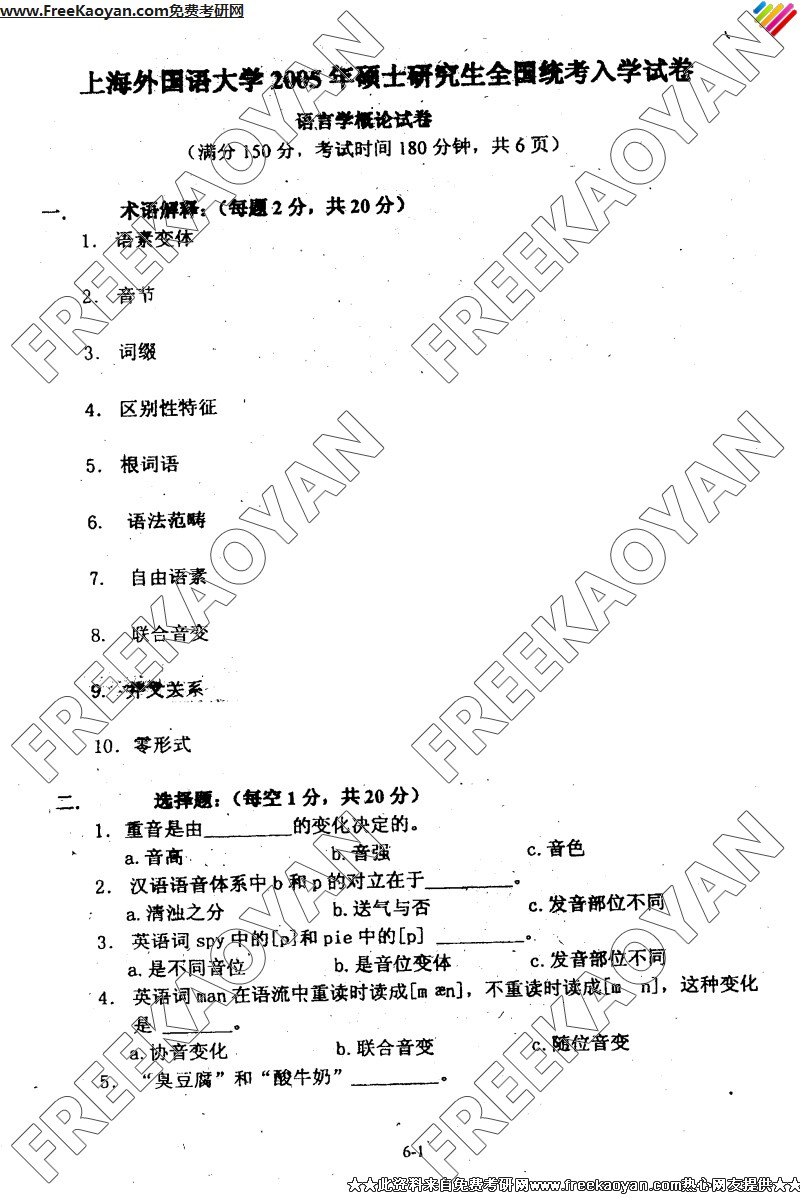 上海外国语大学2005年半岛在线注册真题-语言学概论