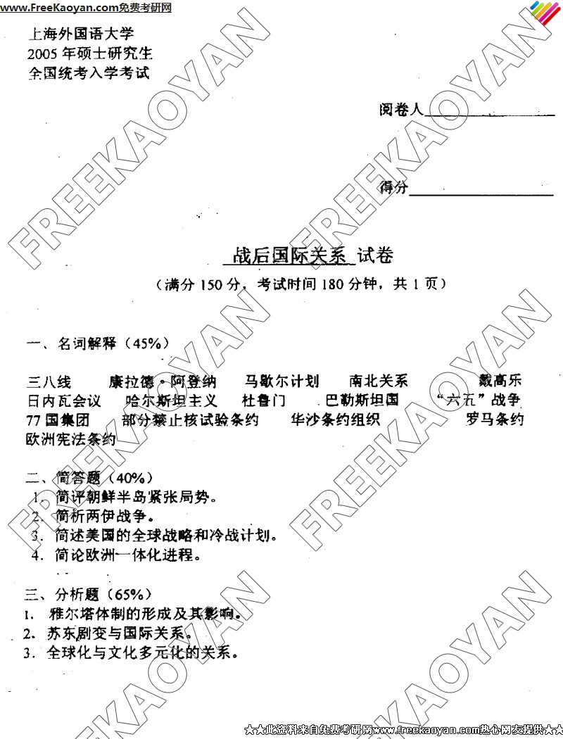上海外国语大学2005年半岛在线注册真题-战后国际关系