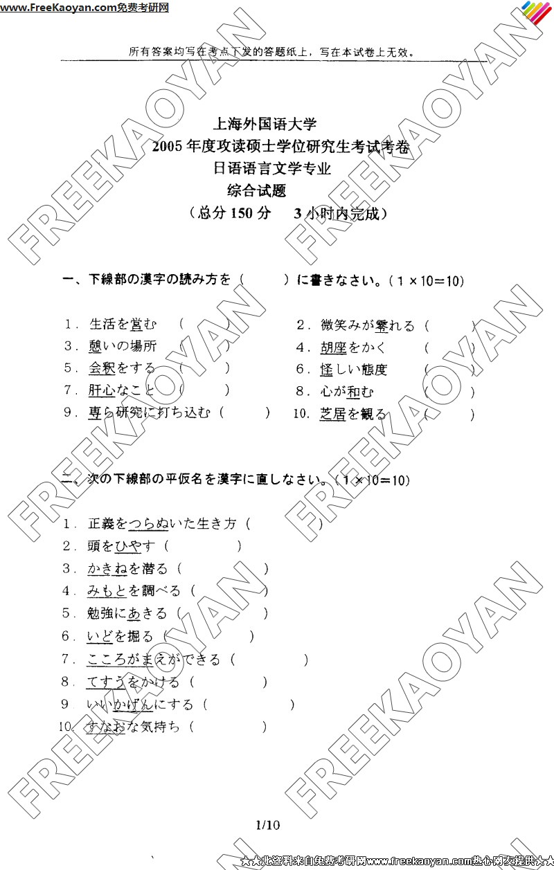 上海外国语大学2005年半岛在线注册真题-综合考试(日语语言文学)