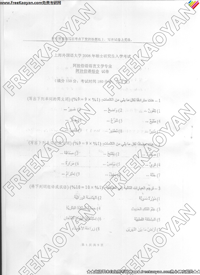 上海外国语大学2006年半岛在线注册真题-阿拉伯语言综合