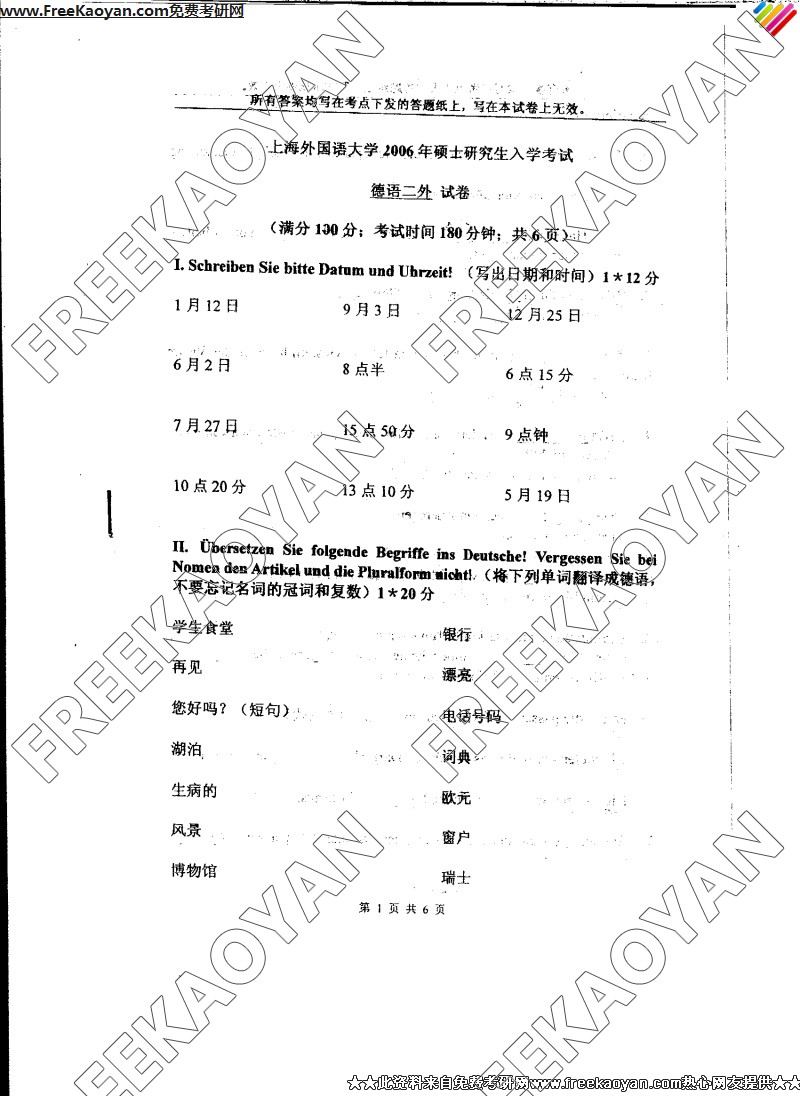上海外国语大学2006年半岛在线注册真题-德语二外