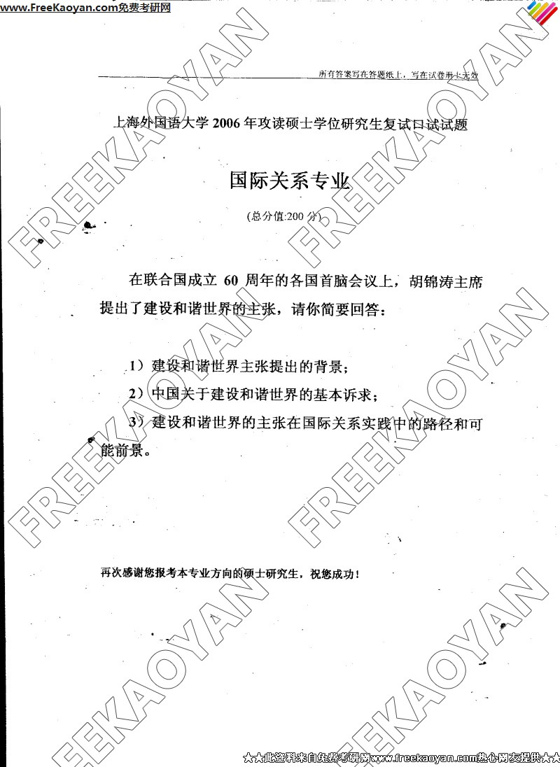 上海外国语大学2006年半岛在线注册真题-国际关系复试
