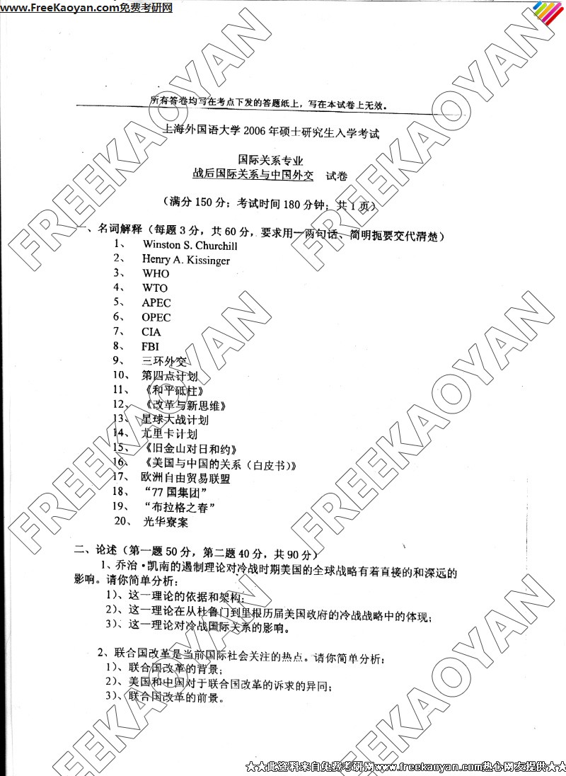 上海外国语大学2006年半岛在线注册真题-战后国际关系与中国外交