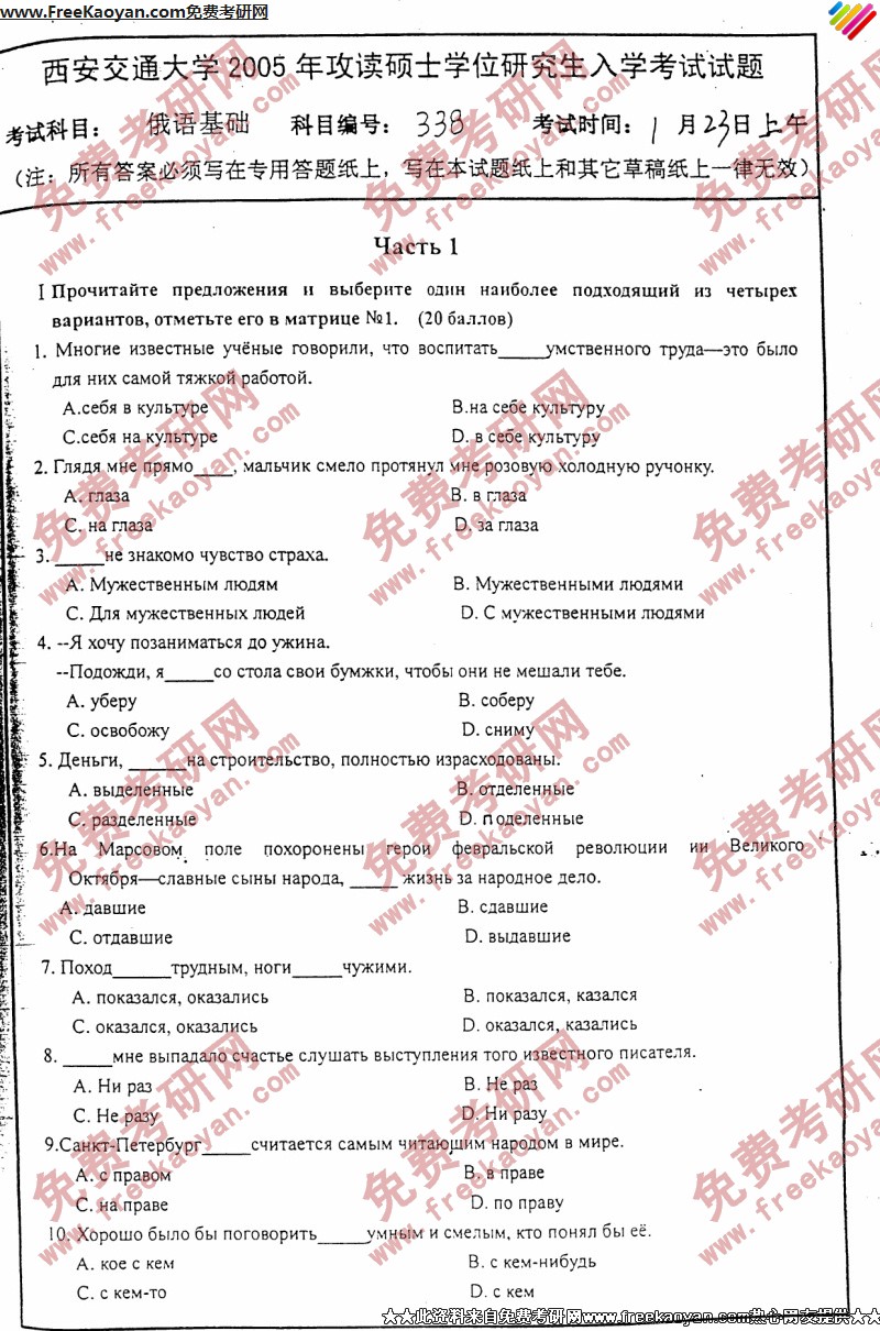 西安交通大学2005年半岛在线注册真题-俄语基础