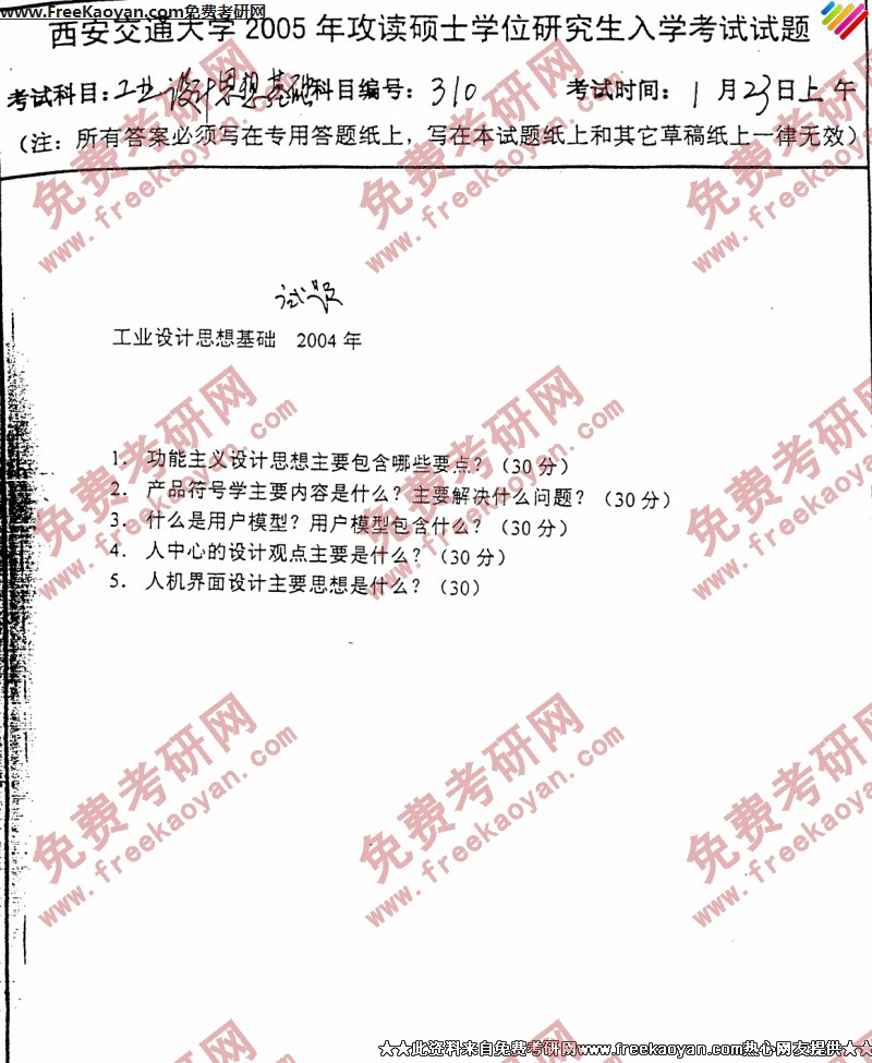 西安交通大学2005年半岛在线注册真题-工业设计思想基础