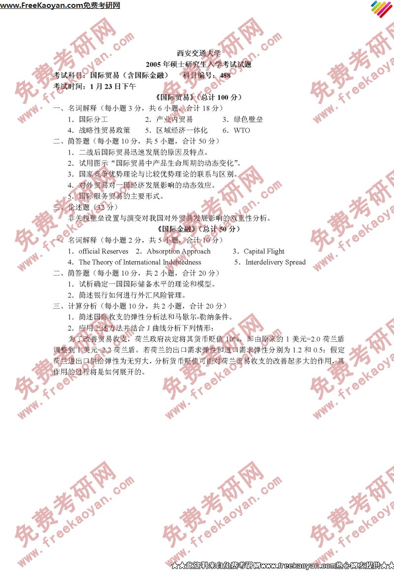 西安交通大学2005年半岛在线注册真题-国际贸易(含国际金融)及答案