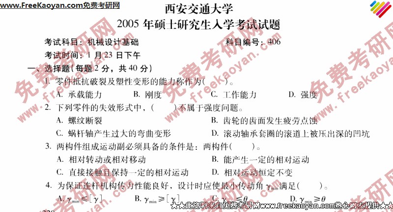 西安交通大学2005年半岛在线注册真题-机械设计基础