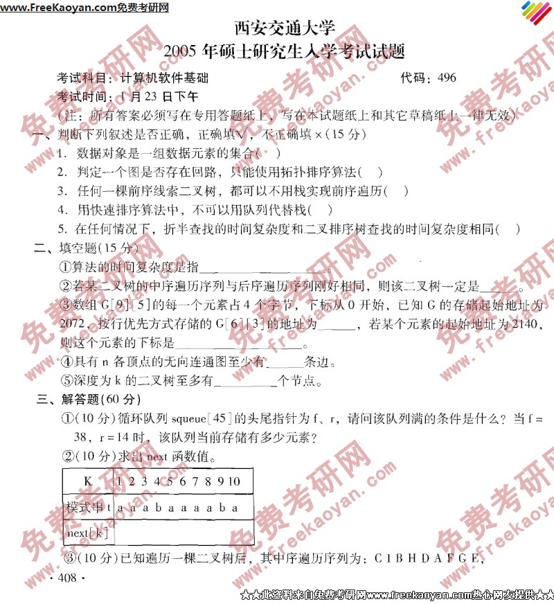 西安交通大学2005年半岛在线注册真题-计算机软件基础