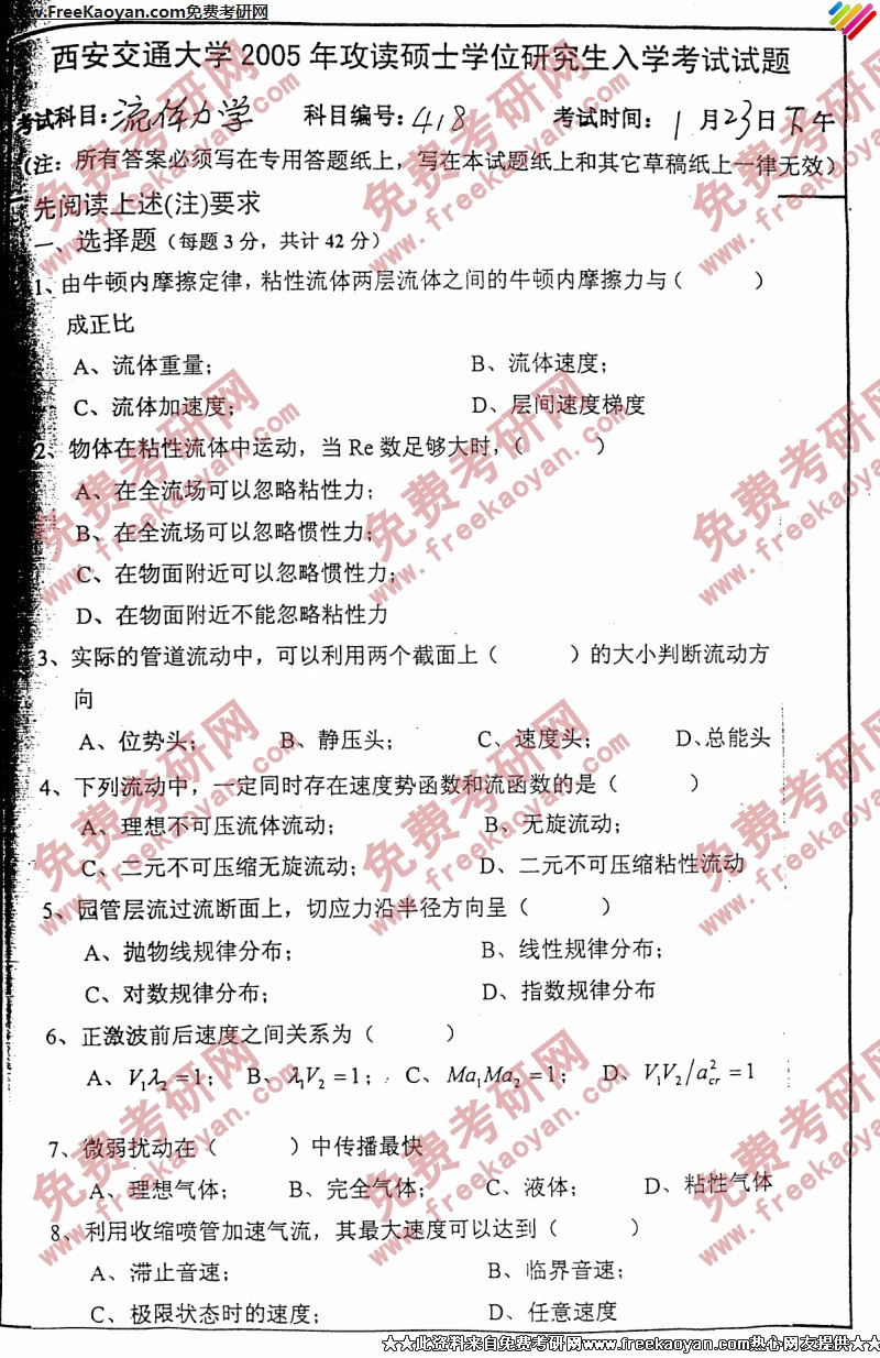 相关话题/西安交通大学 半岛在线注册真题 流体力学