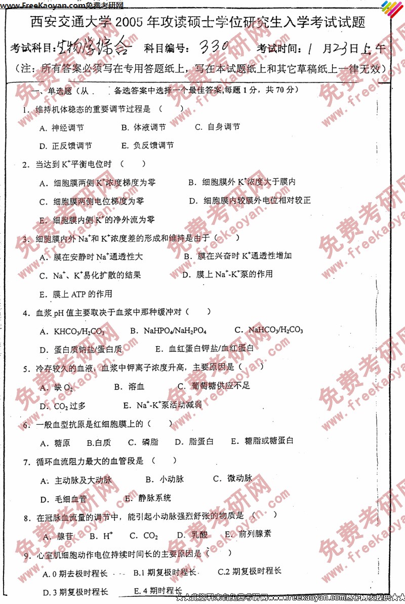 西安交通大学2005年半岛在线注册真题-生物学综合