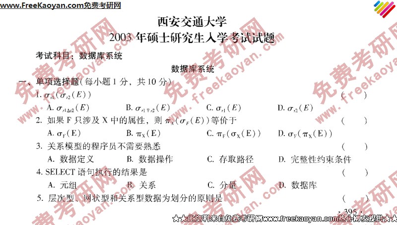 西安交通大学2003年半岛在线注册真题-数据库系统