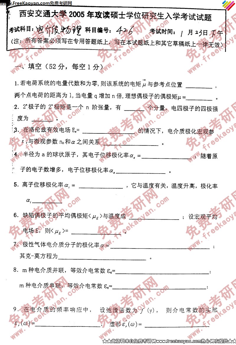 西安交通大学2005年半岛在线注册真题-电介质物理