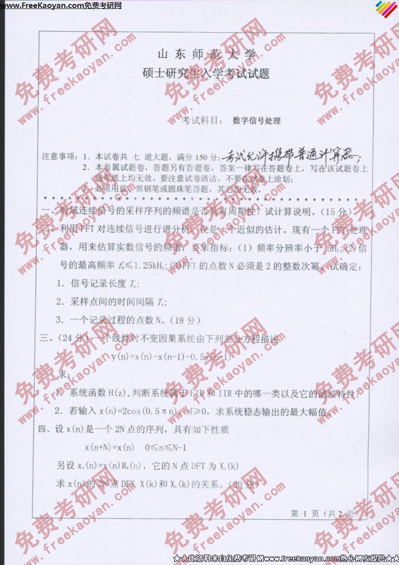 山东师范大学2007年半岛在线注册真题-数字信号处理