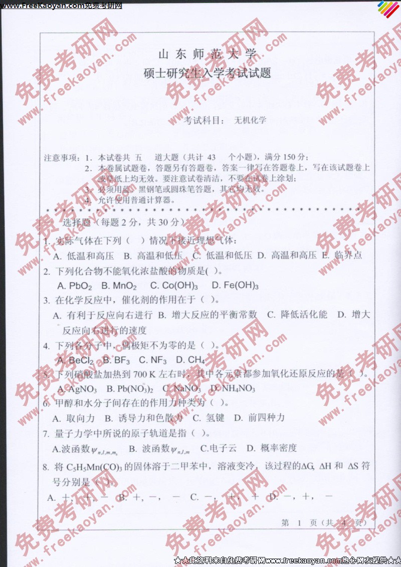 相关话题/山东师范大学 半岛在线注册真题 无机化学