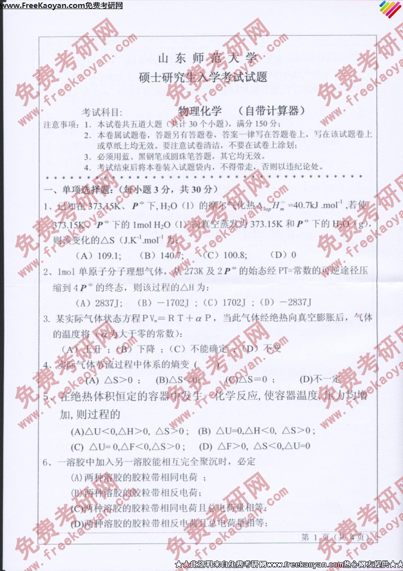 相关话题/山东师范大学 半岛在线注册真题 物理化学