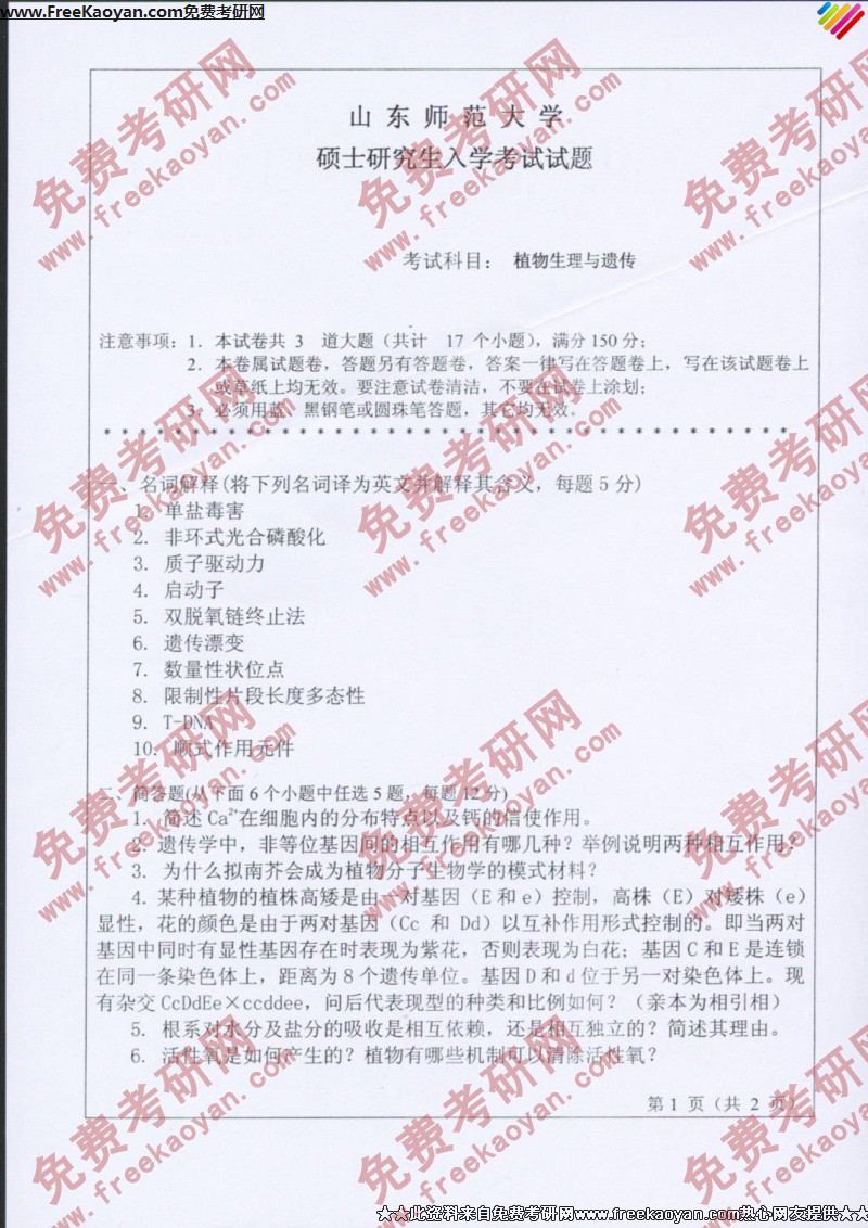 相关话题/半岛在线注册真题 山东师范大学 植物 遗传 生理