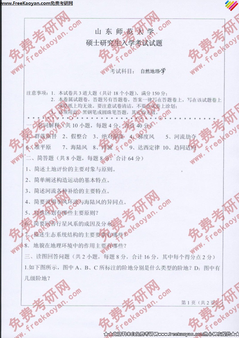 山东师范大学2007年半岛在线注册真题-自然地理学