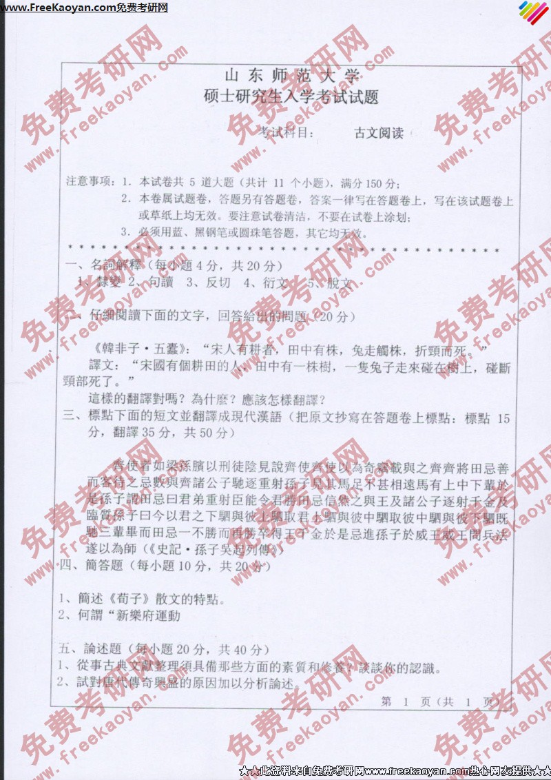 山东师范大学2007年半岛在线注册真题-古文阅读