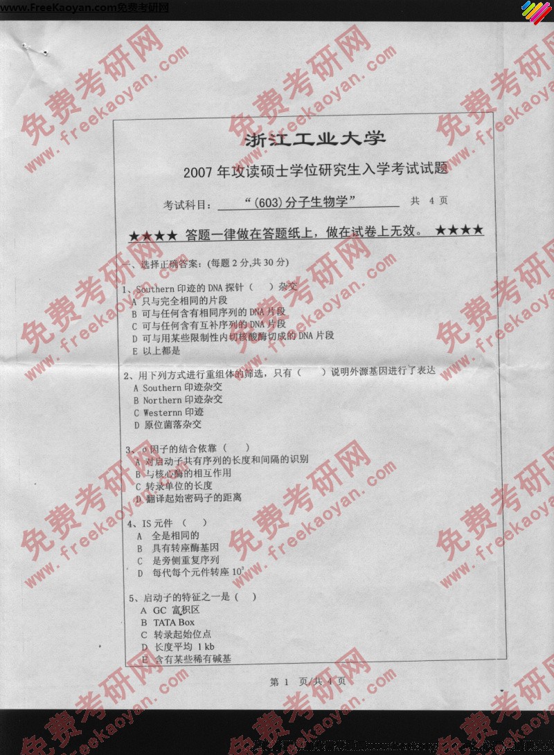 专业课半岛在线注册经验 本站小编 FreeKaoyan 2018-01-23浙江工商大学2007年半岛在线注册专业课试卷微生物学上传的附件b42b3e712adb78689c637e5109c13b10.rar(80.70KB) ...