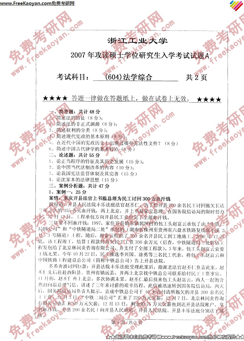 浙江工业大学2007年半岛在线注册真题-法学基础