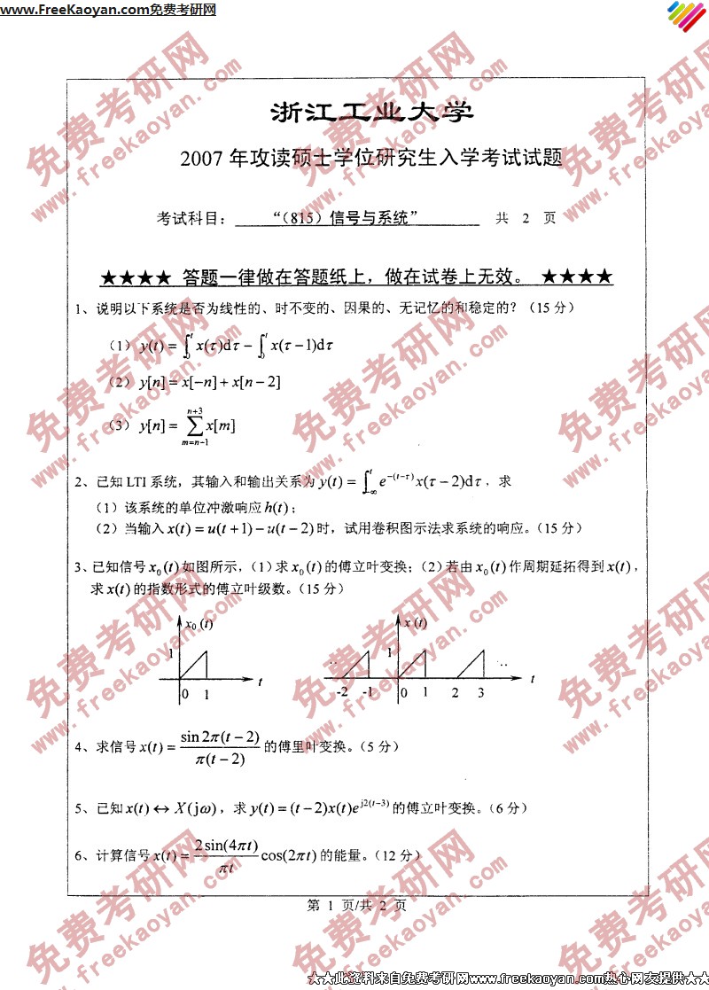 浙江工业大学2007年半岛在线注册真题-信号与系统