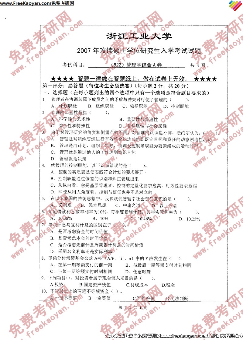 浙江工业大学2007年半岛在线注册真题-管理学综合