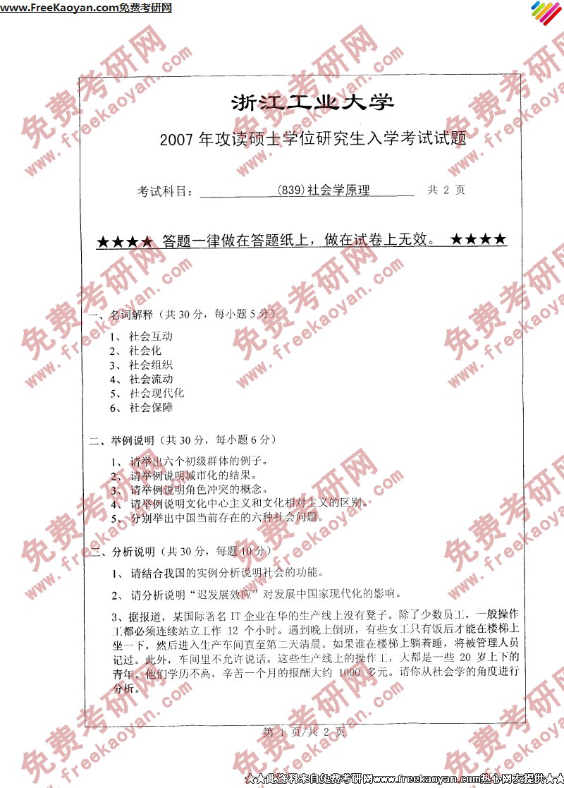 浙江工业大学2007年半岛在线注册真题-社会学原理