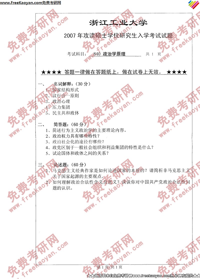 浙江工业大学2007年半岛在线注册真题-政治学原理