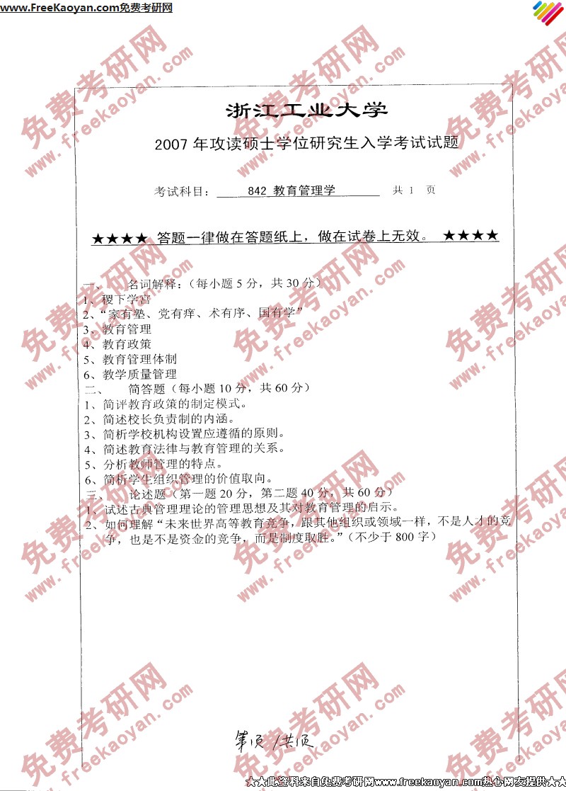 专业课半岛在线注册经验 本站小编 FreeKaoyan 2018-01-23浙江工业大学2007年半岛在线注册真题-汉语与写作