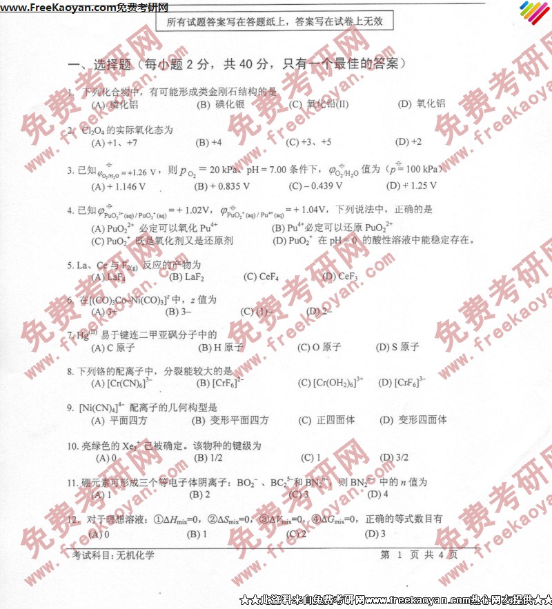 相关话题/半岛在线注册真题 技术 科技 无机化学 答案