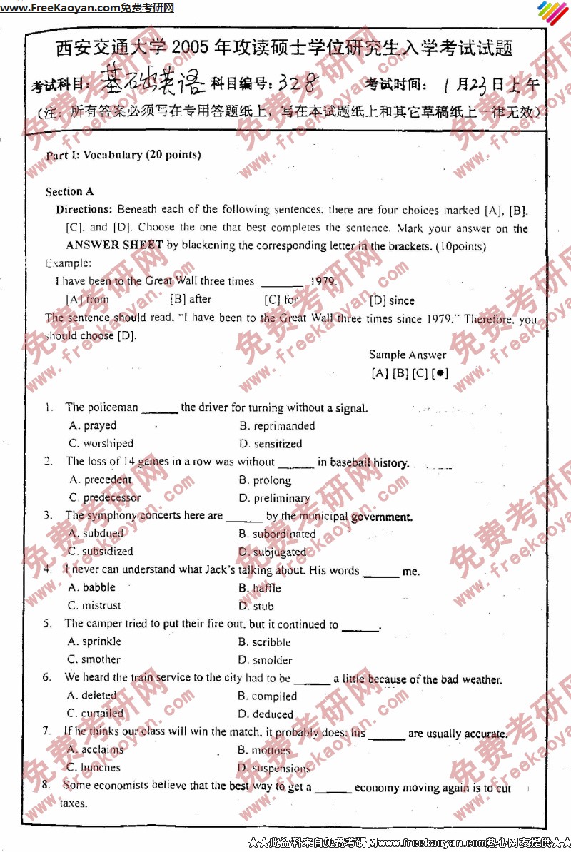 西安交通大学2005年半岛在线注册真题-基础英语