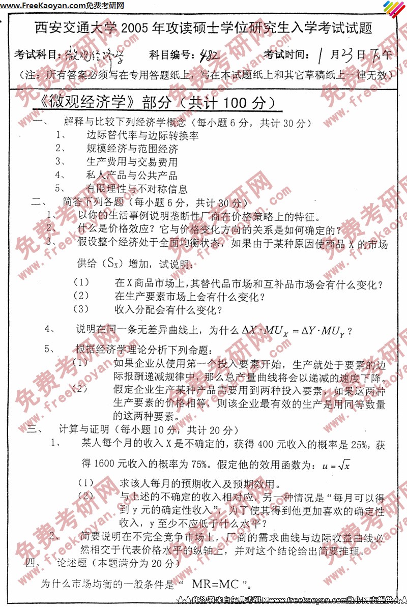 西安交通大学2005年半岛在线注册真题-微观经济学
