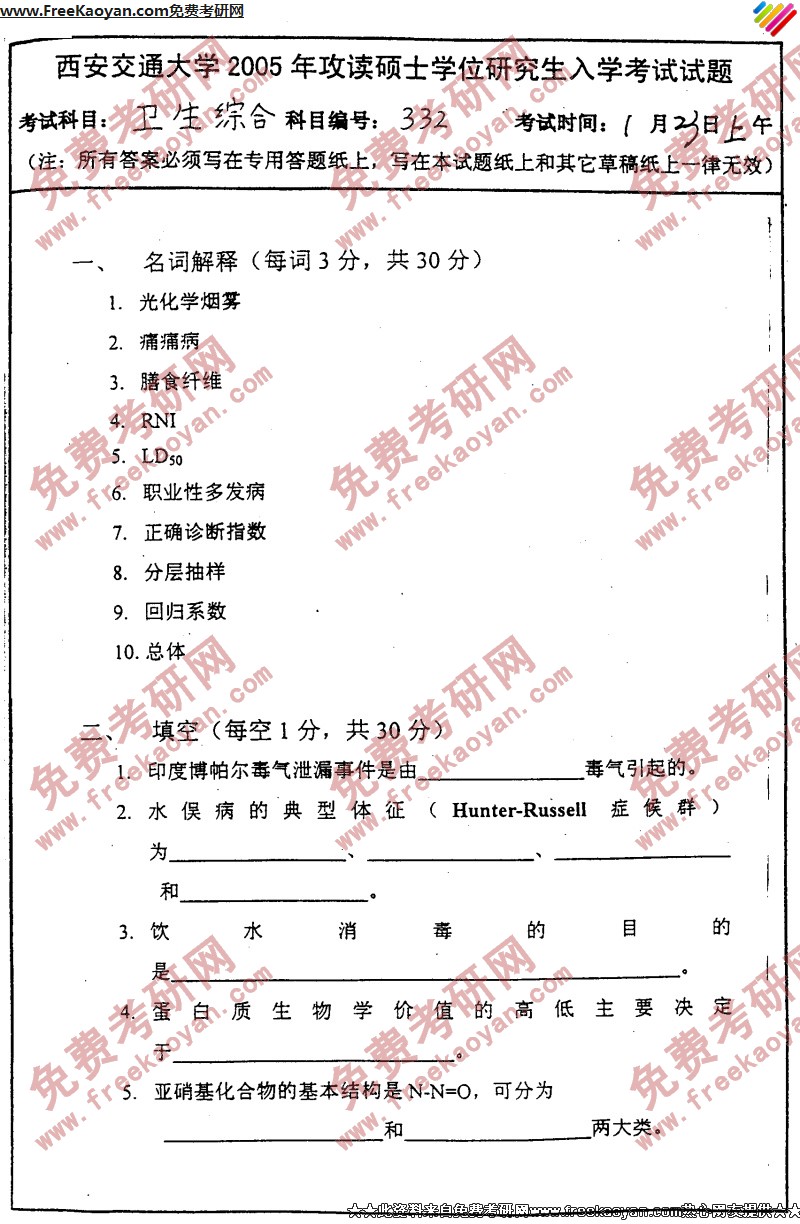 西安交通大学2005年半岛在线注册真题-卫生综合