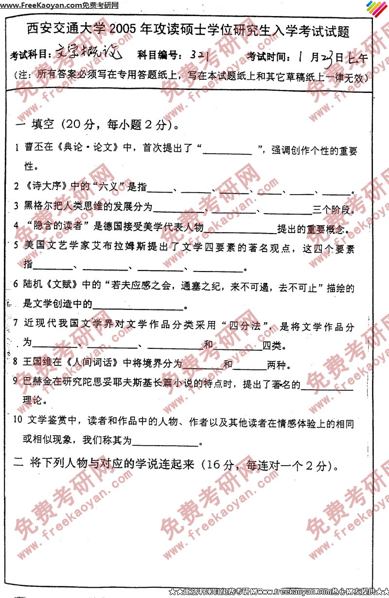 西安交通大学2005年半岛在线注册真题-文学概论