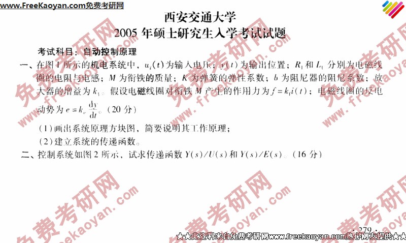 西安交通大学2005年半岛在线注册真题-自动控制原理