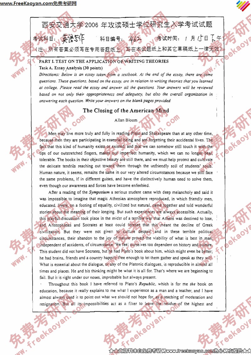 专业课半岛在线注册经验 本站小编 FreeKaoyan 2018-01-23西安交通大学2006年半岛在线注册真题-基础英语