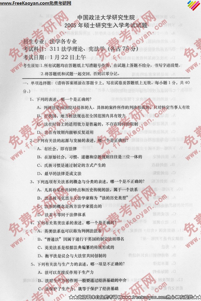 中国政法大学2005年半岛在线注册真题-法学理论、宪法学