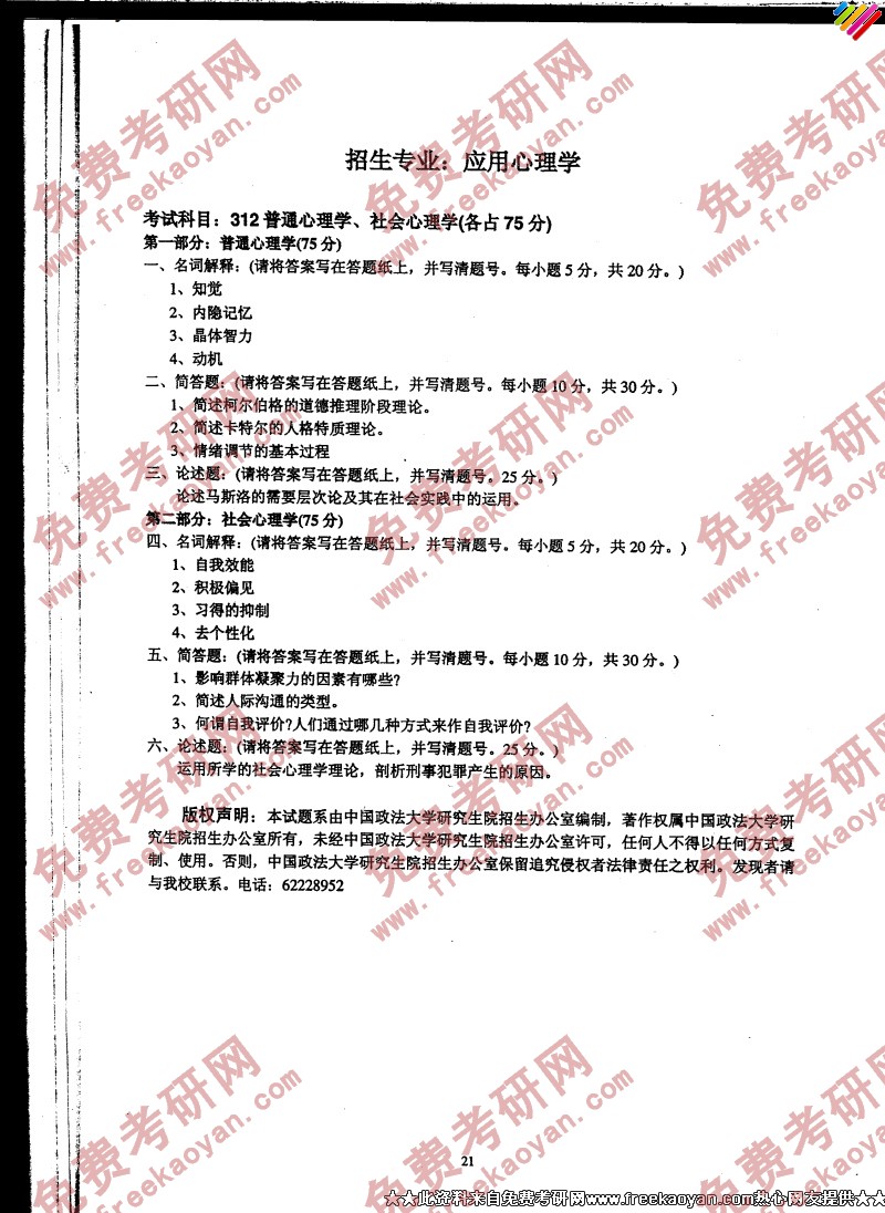 相关话题/半岛在线注册真题 心理学 中国政法大学 社会心理学