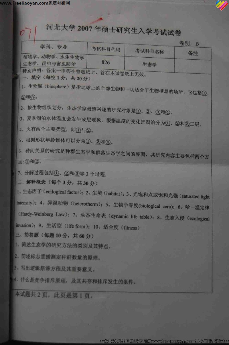 专业课半岛在线注册经验 本站小编 FreeKaoyan 2018-01-23河北大学2007年半岛在线注册真题-人口学