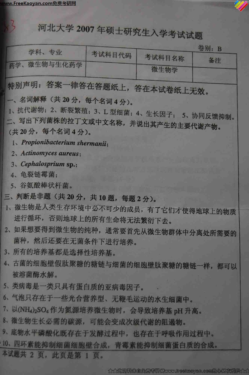 专业课半岛在线注册经验 本站小编 FreeKaoyan 2018-01-23河北大学2007年半岛在线注册真题-生物综合