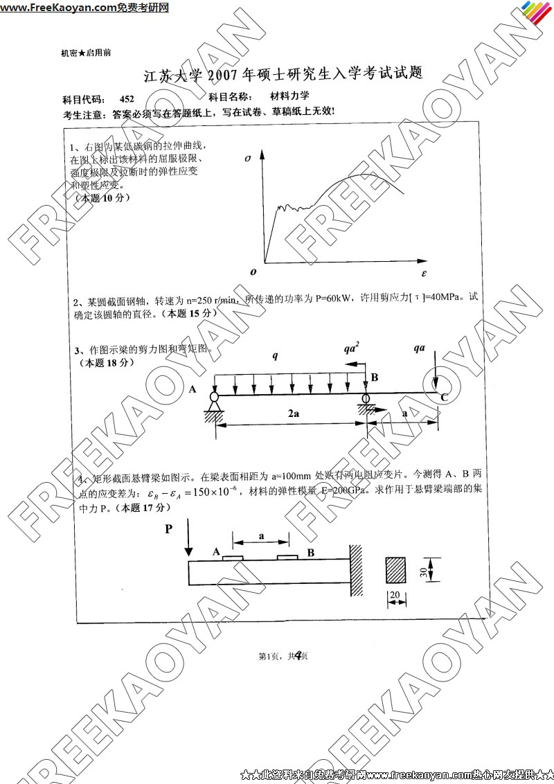 江苏大学2007年半岛在线注册真题-材料力学