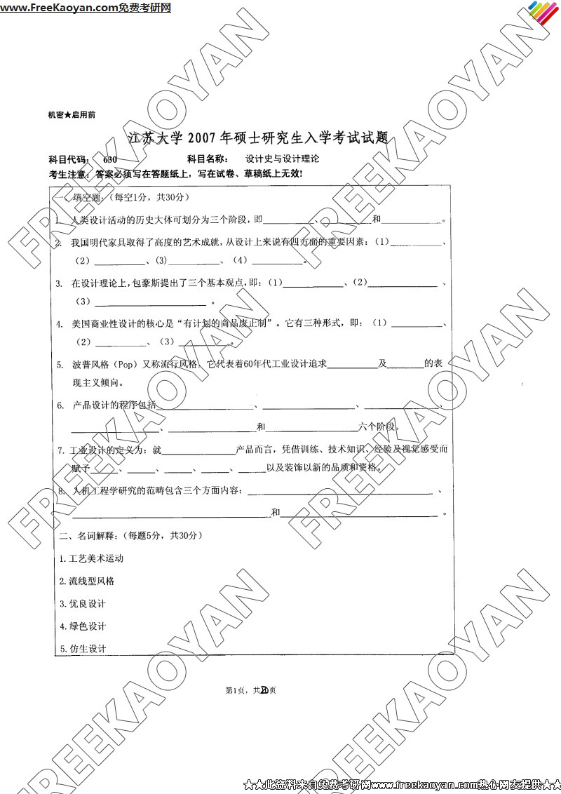 专业课半岛在线注册经验 本站小编 FreeKaoyan 2018-01-23江苏大学2007年半岛在线注册真题-设计史