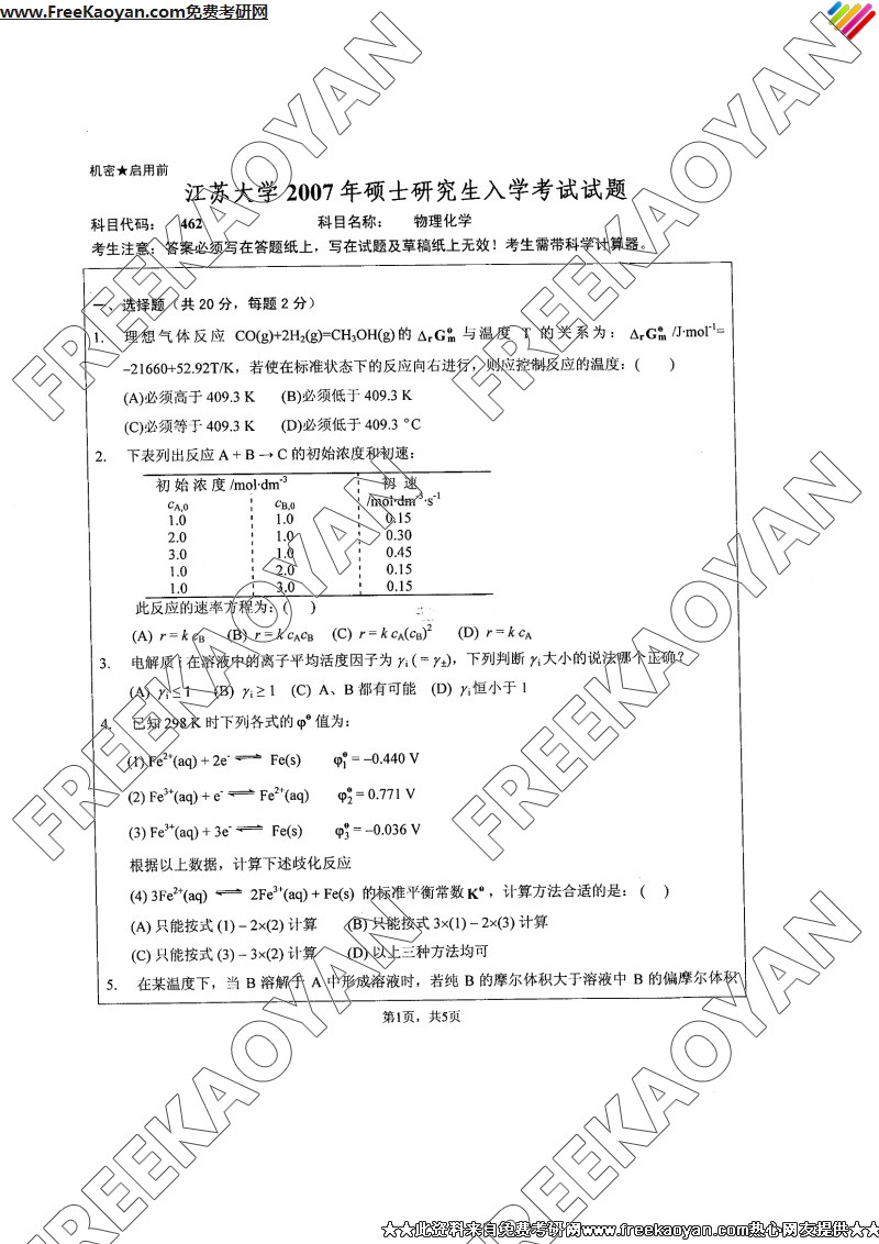 相关话题/江苏大学 半岛在线注册真题 物理化学