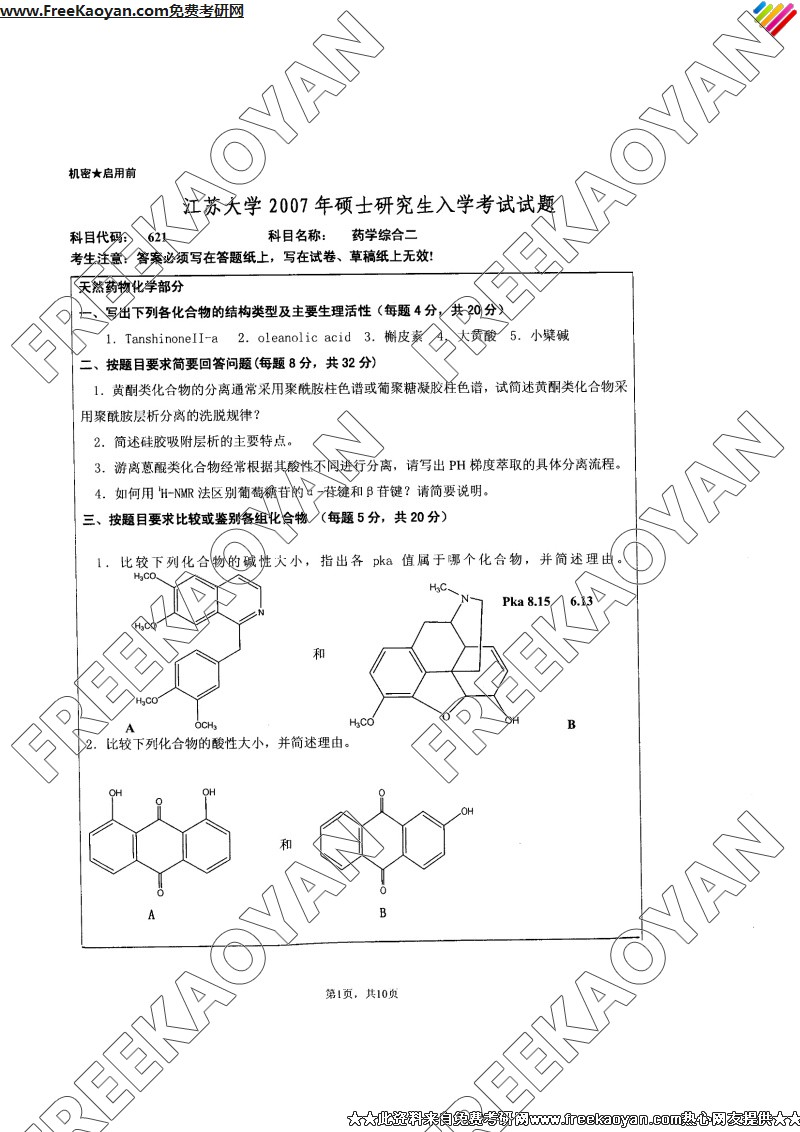 专业课半岛在线注册经验 本站小编 FreeKaoyan 2018-01-23江苏大学2007年半岛在线注册真题-无机化学