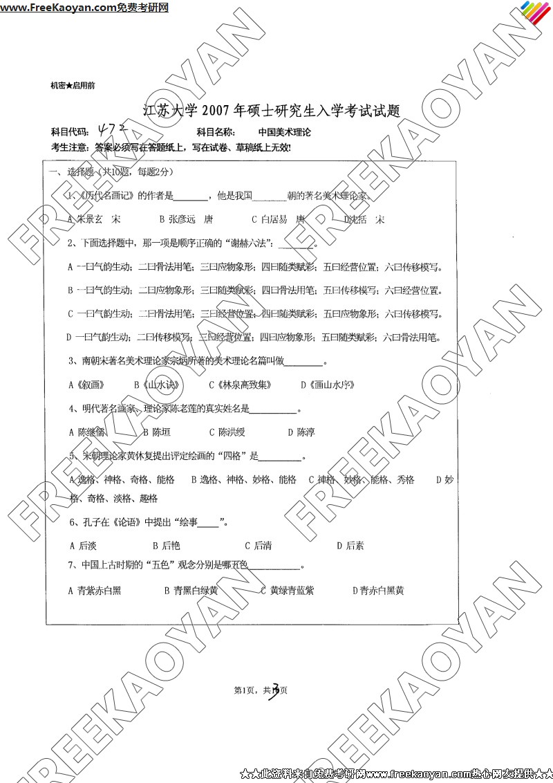 专业课半岛在线注册经验 本站小编 FreeKaoyan 2018-01-23江苏大学2007年半岛在线注册真题-中国美术史