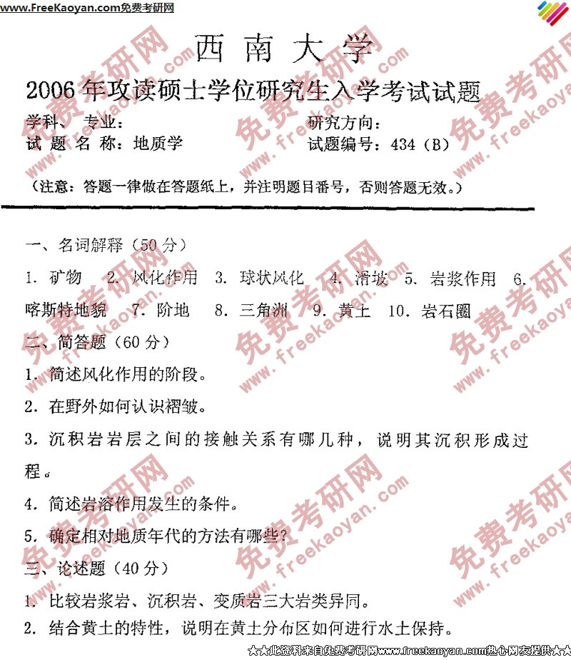 专业课半岛在线注册经验 本站小编 FreeKaoyan 2018-01-23西南大学2006年半岛在线注册真题-包装印刷工艺